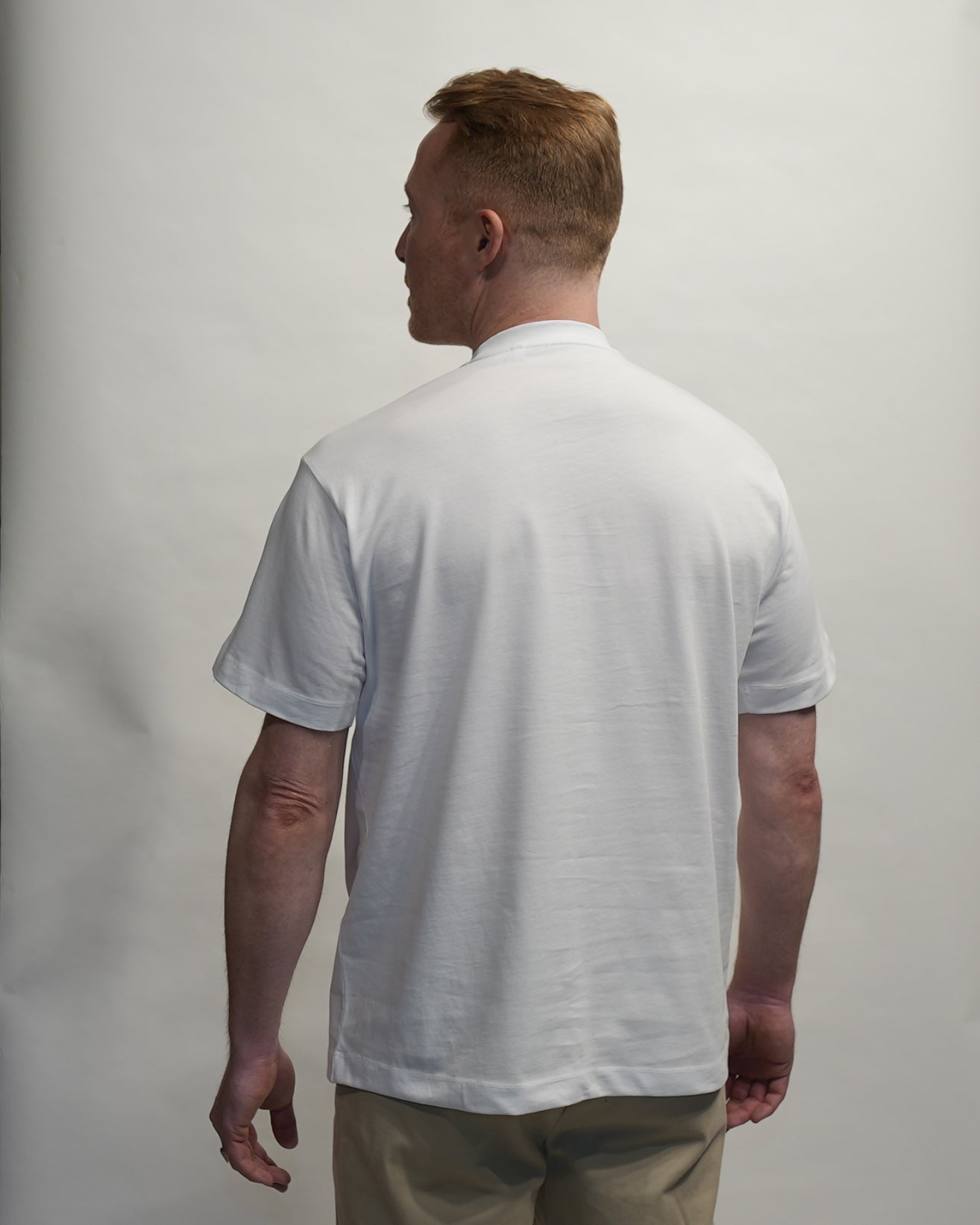 Rundhalsausschnitt, doppelnähte an Schultern