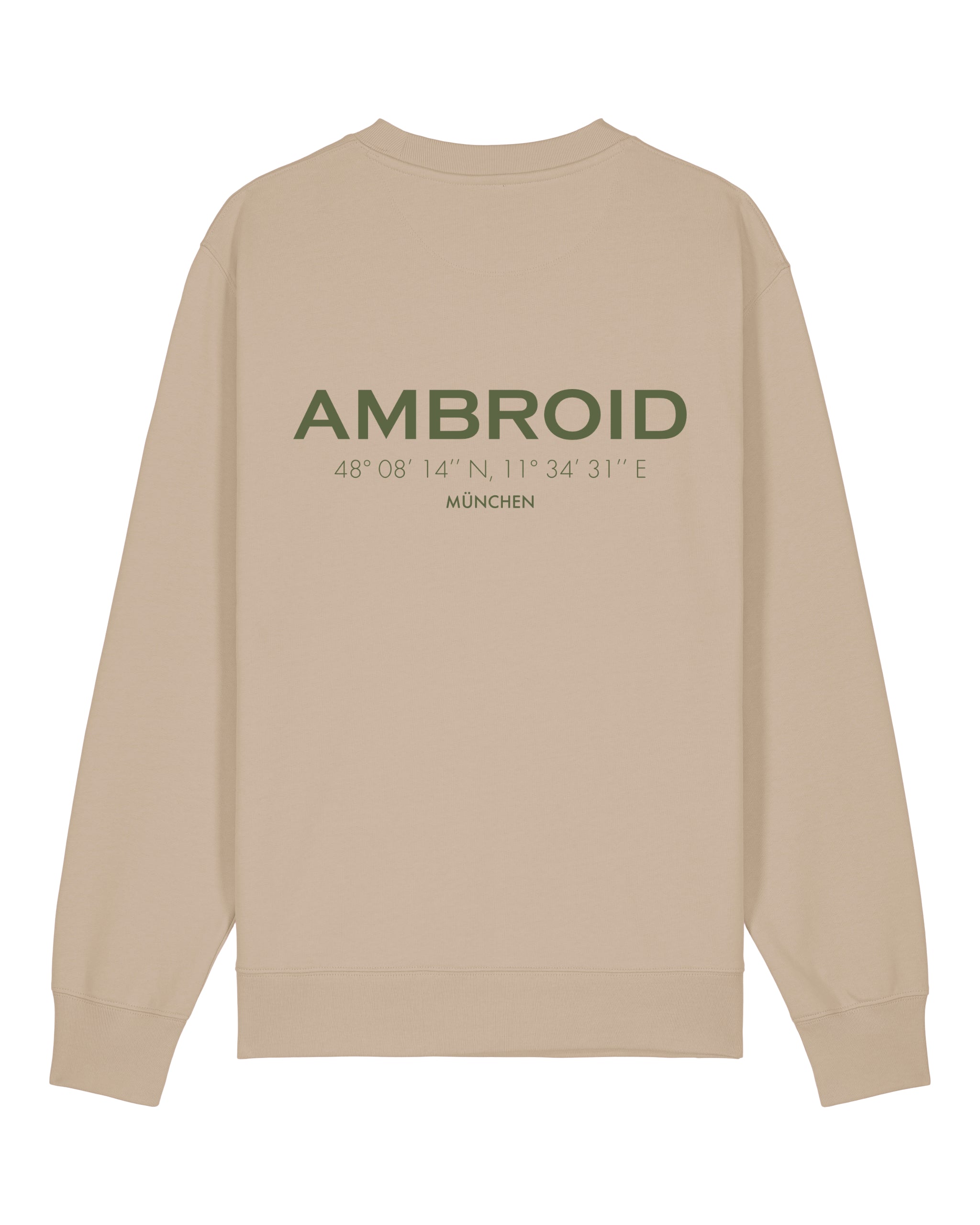 Entdecken Sie das München Sweatshirt in Desert! Dieses Unisex Sweatshirt ist ein Must-Have mit den Koordinaten von München und einem auffälligen Backprint. Veredelt am Tegernsee ist es ein hochwertiges und trendiges Kleidungsstück. Holen Sie sich jetzt Ihr persönliches Stück von München!